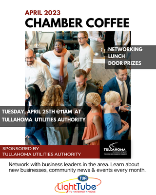 The April Chamber Coffee will be held on Tuesday, April 28th at 11:00 a.m. at The Atlantic Venue in Tullahoma. The monthly networking event is sponsored by Tullahoma Utilities Authority.